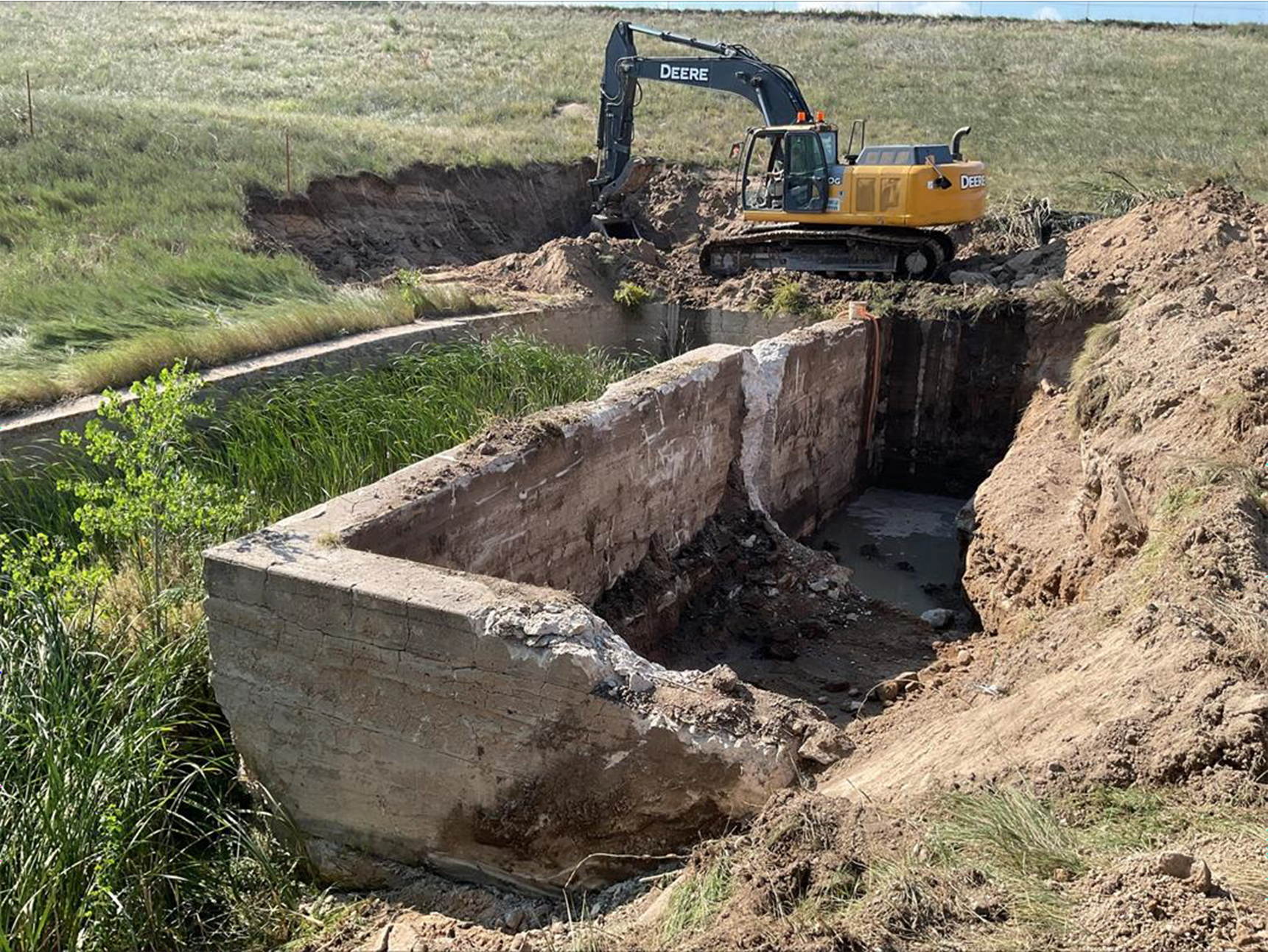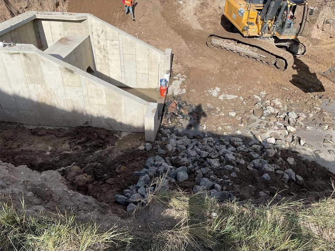 Excavator removing the existing outlet structure.