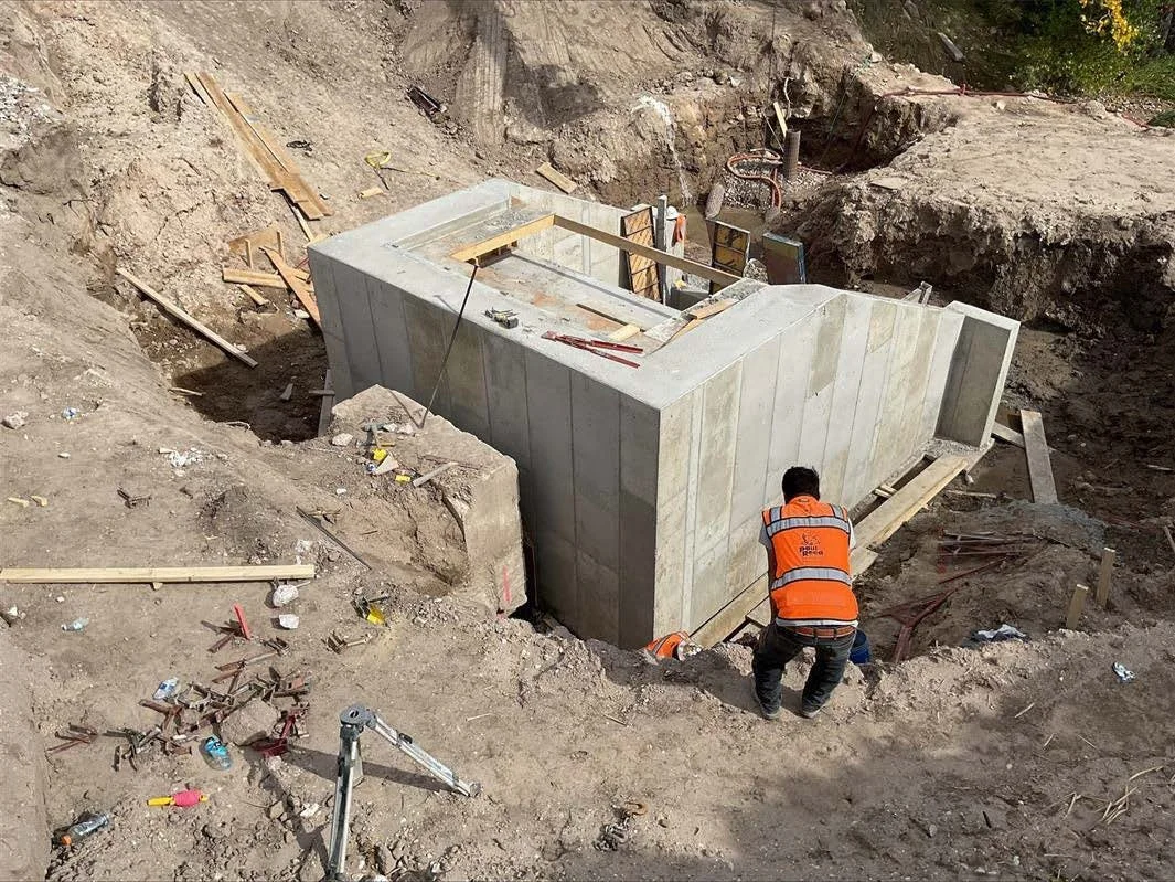 Rebar and forms for the impact basin walls.
