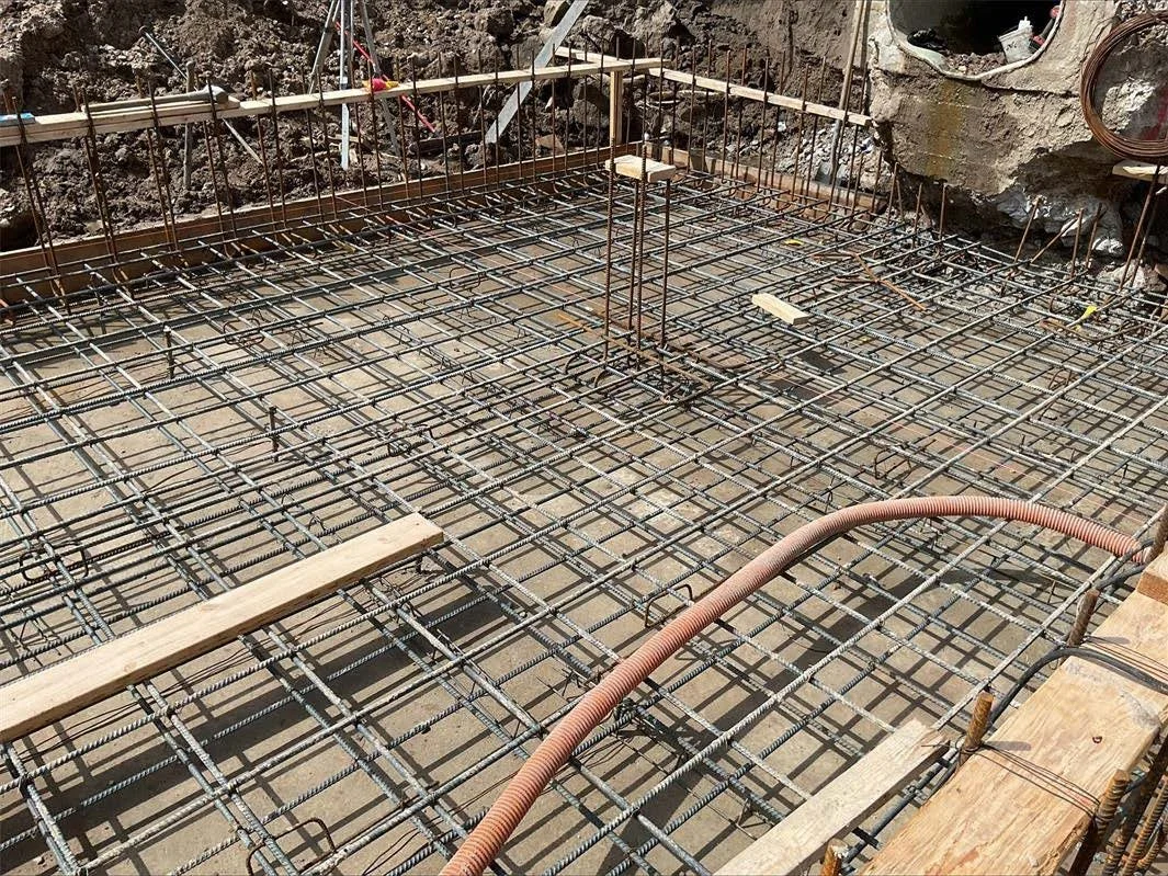 Crew placed rebar for the Basin floor pour.