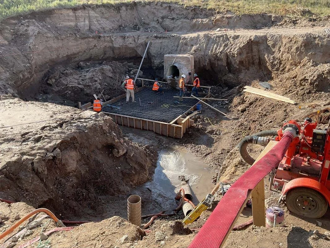Paul Reed Construction & Supply, Inc. has begun work on the Oliver Reservoir Stilling Basin Rehabilitation Project. The stilling basin—an essential structure designed to reduce water velocity before it flows downstream—is being upgraded to ensure its long-term stability and effectiveness. Construction is anticipated to be completed by October.