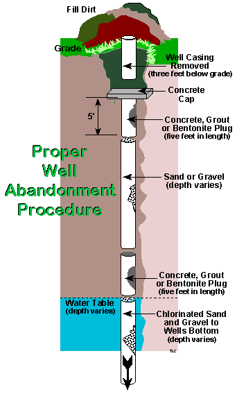 Old water wells not properly sealed and filled are an easy path for contaminants such as sediment, bacteria and chemicals to reach the groundwater supply. They also pose a hazard to children or animals that could fall into larger wells.